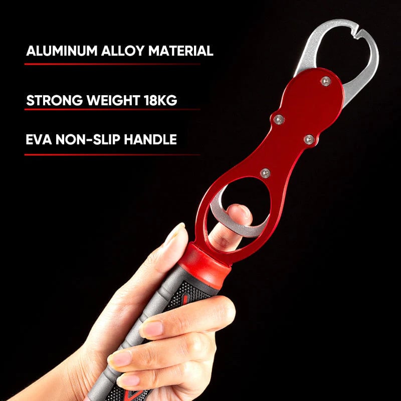 စကေးပါသော Fish Lip Gripper: ငါးဖမ်းကိရိယာတွင် ကြည်လင်ပြတ်သားစွာ ဖတ်ရှုနိုင်စေရန် အလေးချိန် ၃၉ ပေါင်အထိ တပ်ဆင်ထားသည့် ချိန်ခွင်တစ်ခုပါရှိသည်။