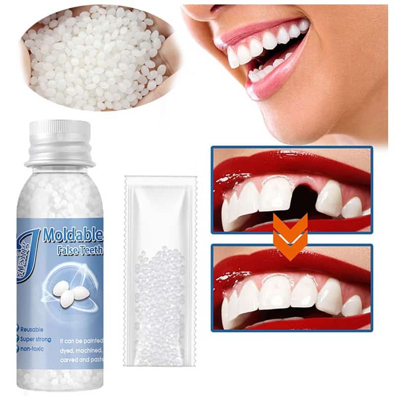 တစ်မိနစ်ခန့်ကြာပြီးနောက်၊ အဖြူရောင်အမှုန်များသည် ကြည်လင်တောက်ပလာပြီး သွားများကို ပုံသွင်းရန် အဆင်သင့်ဖြစ်ပြီ၊ အပိုပစ္စည်းသည် သွား၏နောက်ကျောကို ထိန်းထားနိုင်စေပါသည်။