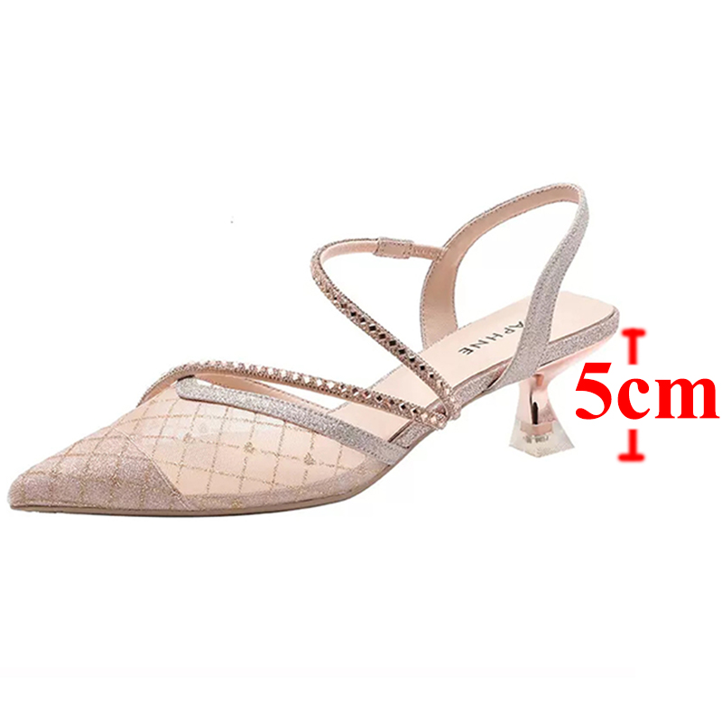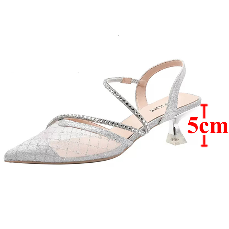 လွန်ခဲ့သော ၅ မိနစ်ခြေချောင်းချွန်ကွက် rhinestone ဒေါက်မြင့်ဖိနပ်