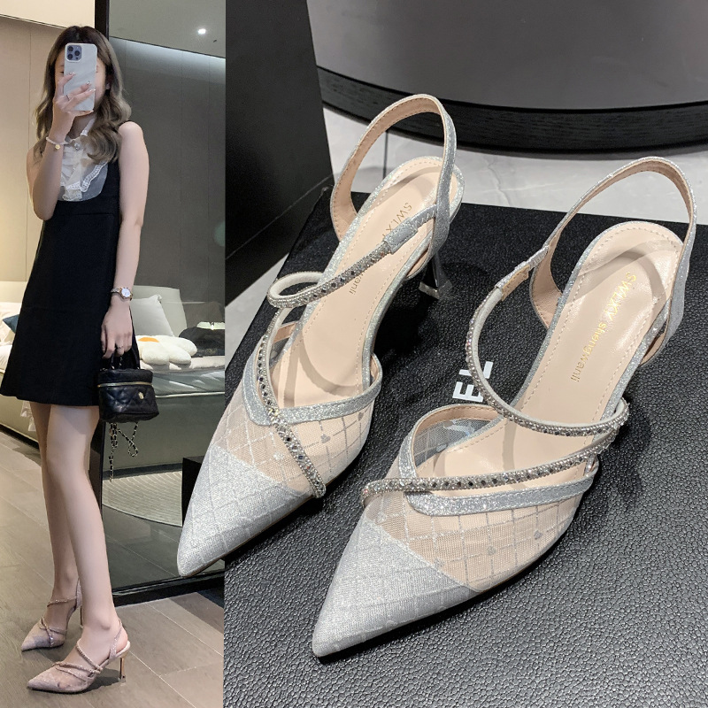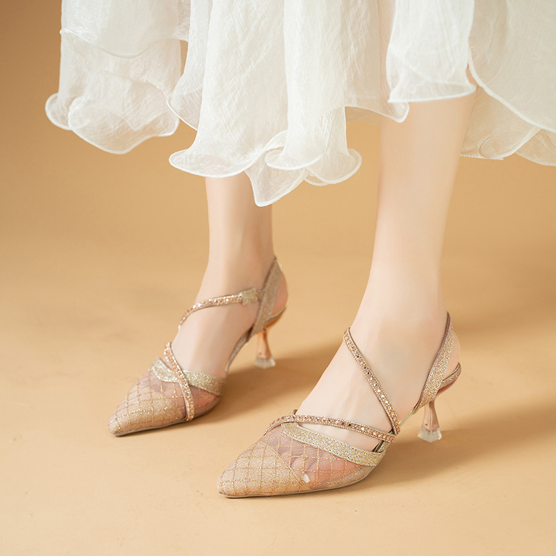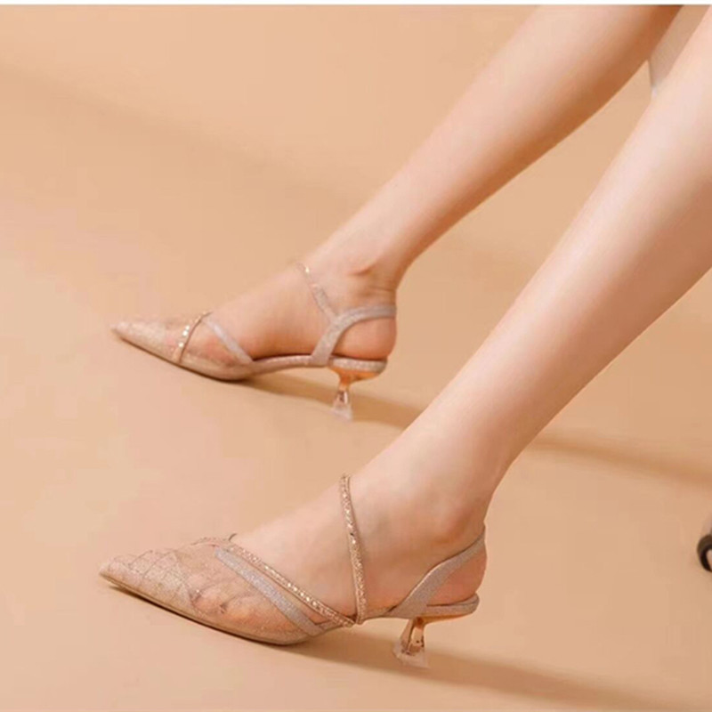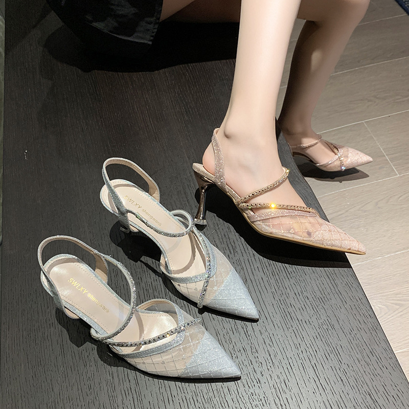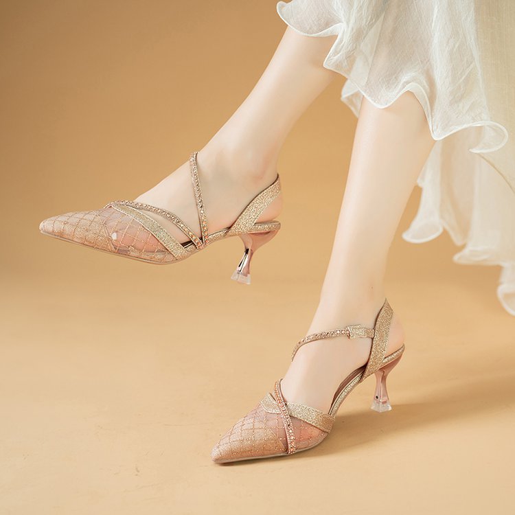 နာရီဝက်စောပြီးခြေချောင်းချွန်ကွက် rhinestone ဒေါက်မြင့်ဖိနပ်