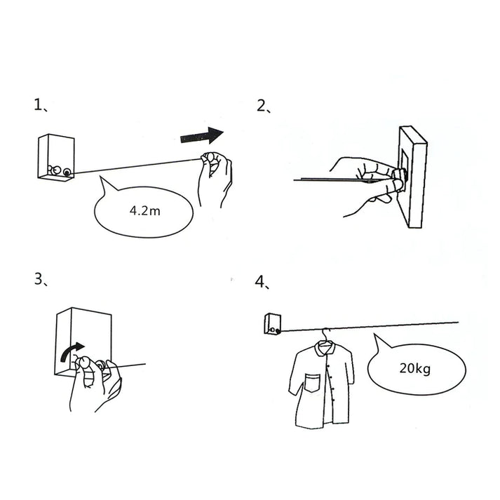 လွန်ခဲ့သော ၄ မိနစ်အကြီးစား Stainless Steel Wall Mount Retractable Rope Invisible Clothesline