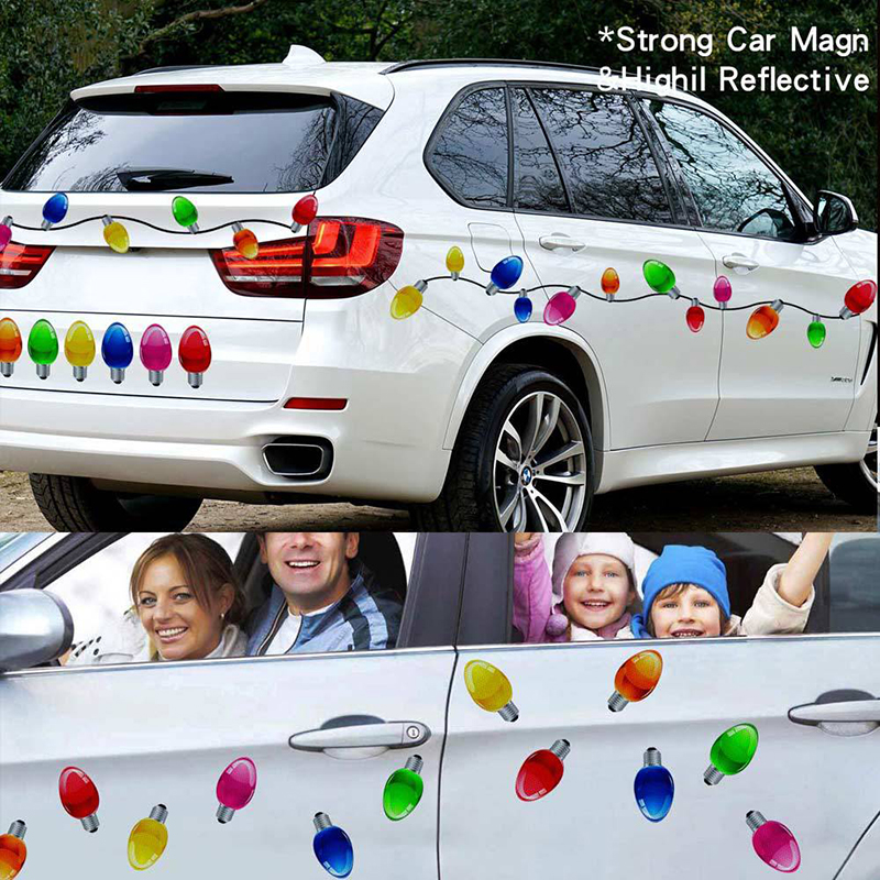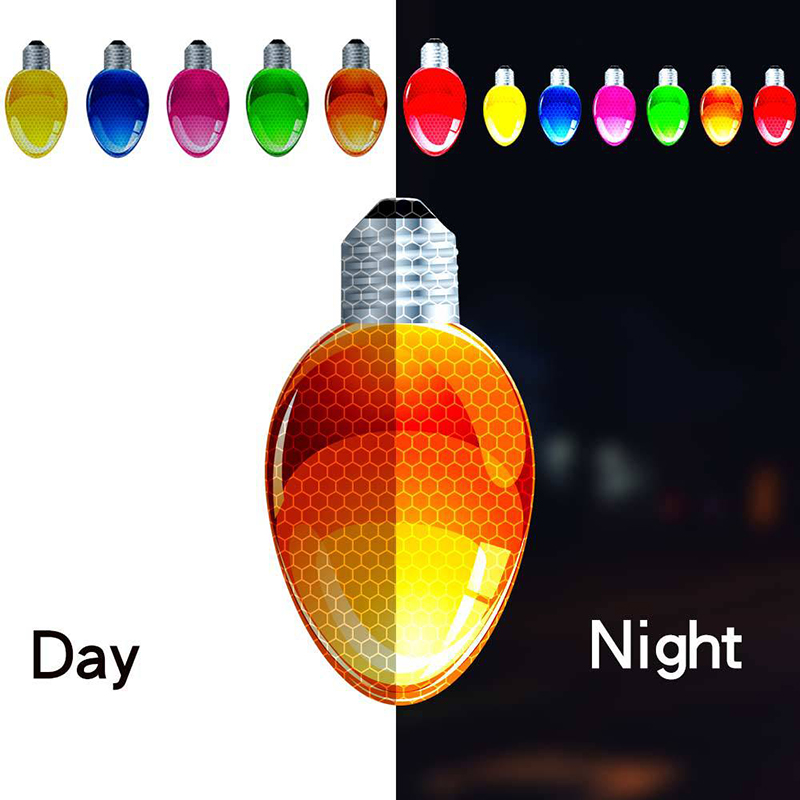 ရောင်ပြန်ဖလင်နှင့် သံလိုက်ဖြင့် ပြုလုပ်ထားသည်။ ရှေ့မီးများကို လင်းသောအခါတွင် ဤရောင်ပြန်ခရစ္စမတ်မီးသီးသံလိုက်များသည် လင်းနေပုံရသည်။