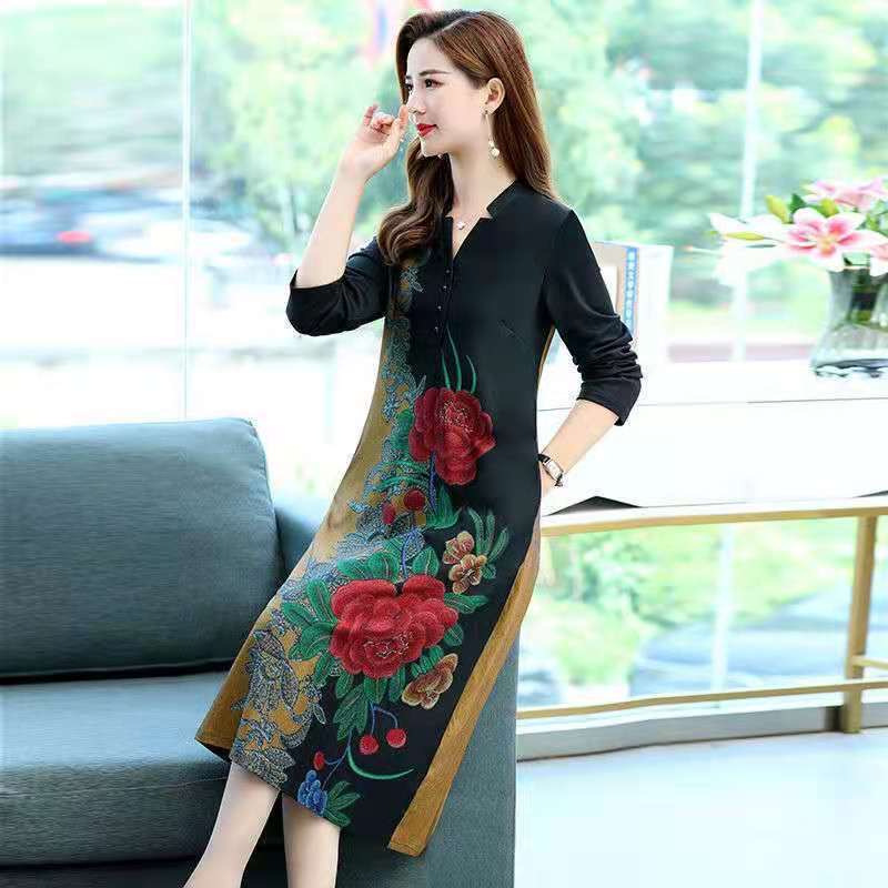 နာရီဝက်စောပြီးအလယ်အလတ် နိုင်ငံခြားစတိုင် V-လည်ပင်း မြင့်မြတ်သော အမျိုးသမီးဝတ် အရှည်