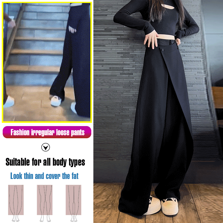 နာရီဝက်စောပြီး ခေတ်ဆန်သော Irregular Stitching Drape Straight Leg Suit ဘောင်းဘီ