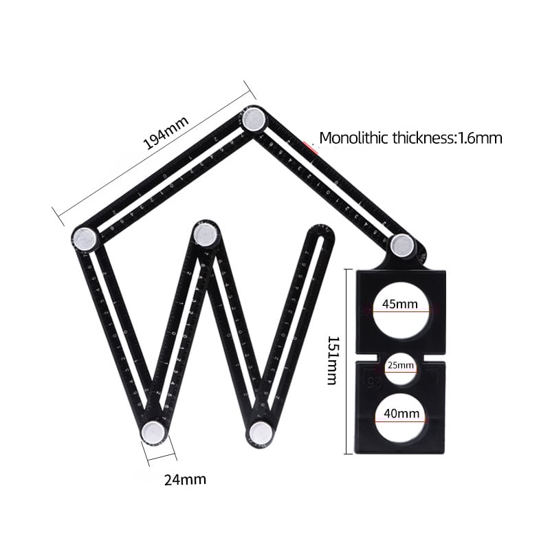 ???? တိကျသောထောင့်တိုင်းတာမှုကိရိယာ- ဤ Universal Opening Locator သည် တိကျပြီး တိကျသောထောင့်တိုင်းတာခြင်းအတွက် ပြီးပြည့်စုံသော လေဆာဖြင့်ထွင်းထားသော အမှတ်အသားများဖြစ်ပါသည်။ ချိန်ညှိနိုင်သော 2 ဘက်ခြမ်းလက်မောင်း 4 ခုဖြင့် အလုပ်တိုင်းအတွက် စိတ်ကြိုက် stencil ကို ဖန်တီးနိုင်ပါသည်။ အုတ်ကြွပ်၊ အခင်း၊ အုတ်၊ သစ်သား၊ ကြွေပြား၊ သတ္တုနှင့် အခြားအရာများကို အမှတ်အသားပြုလုပ်ရန် ၎င်းကို အသုံးပြုပါ။