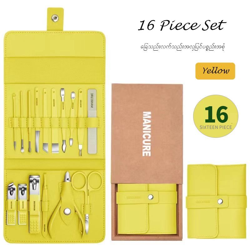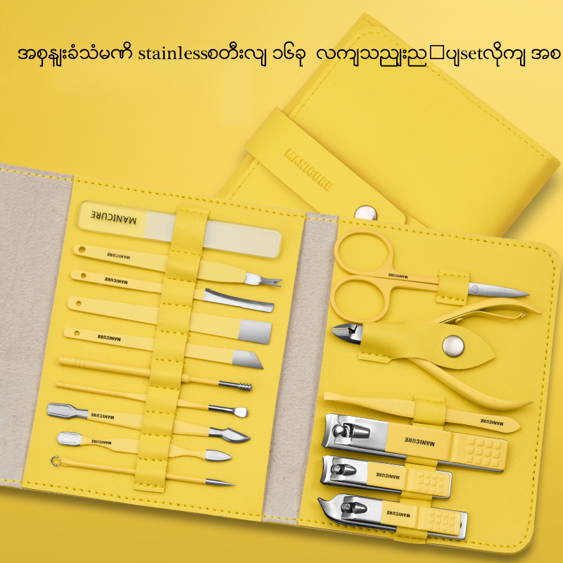 နာရီဝက်စောပြီးအစွန်းခံသံမဏိ stainlessစတီးလ် ၁၆ခု လက်သည်းညှပ်setလိုက် အစ