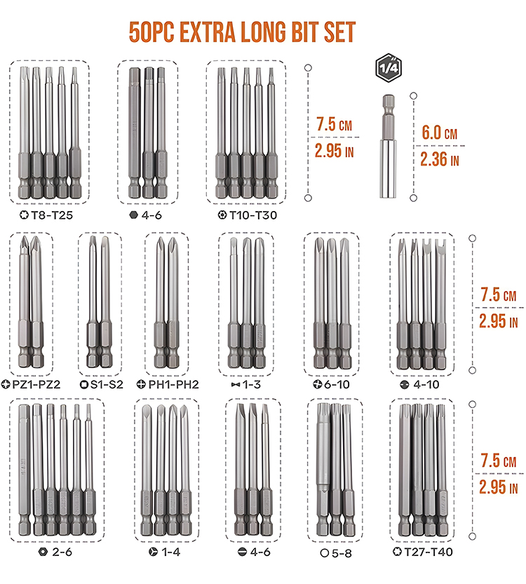 နာရီဝက်စောပြီးတိုးချဲ့ 50PC ဝက်အူလှည့်အစုံ