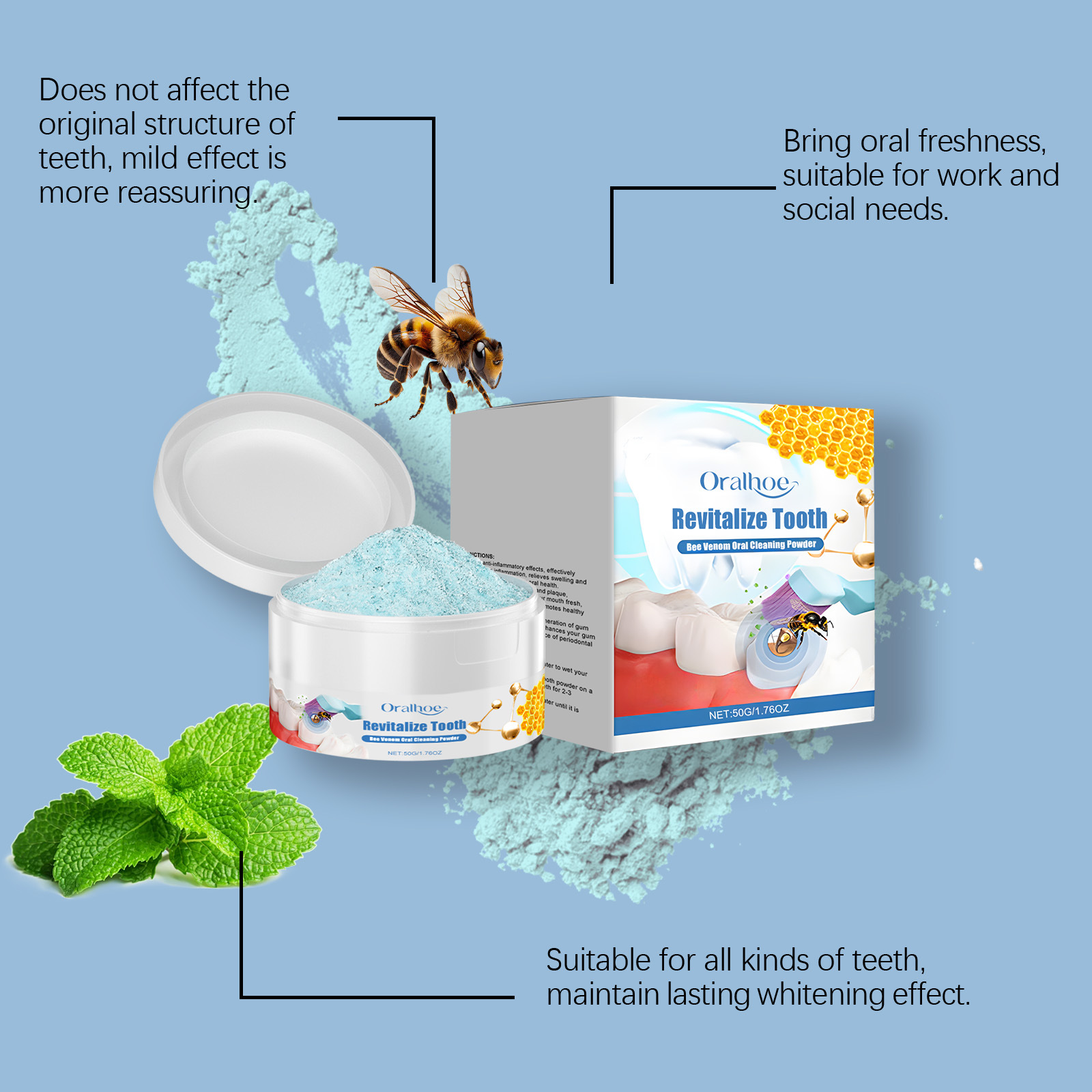 လွန်ခဲ့သော ၁ မိနစ်ORALHOE Bee Venom Tooth Cleansing Powder