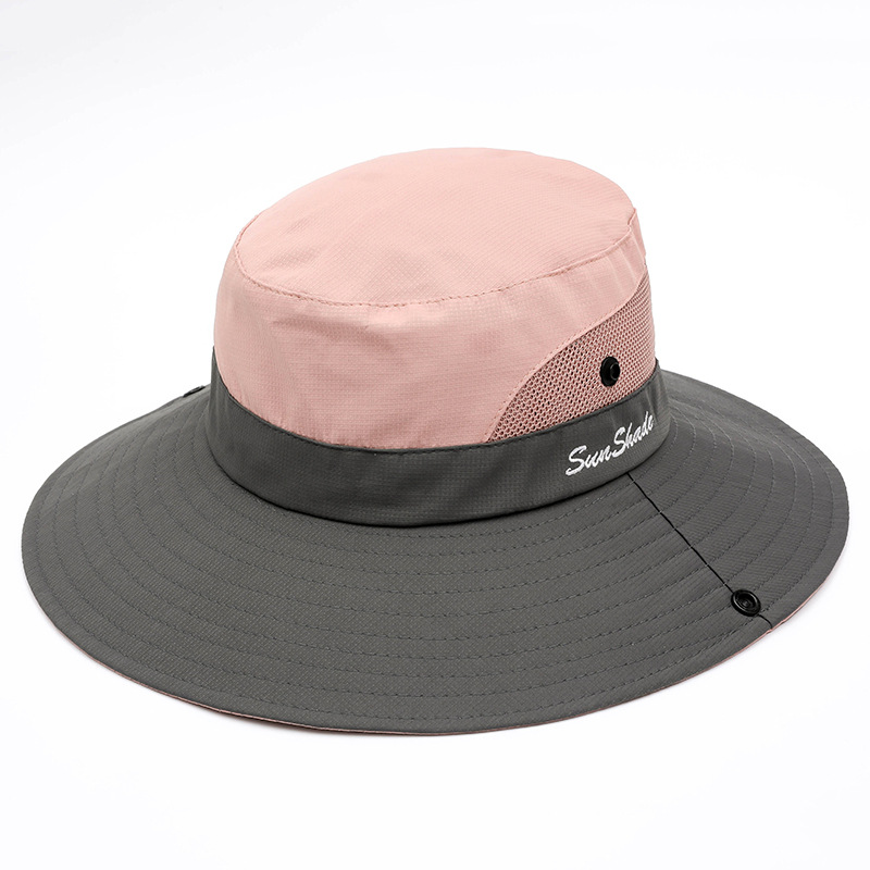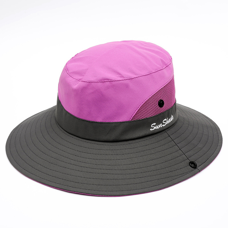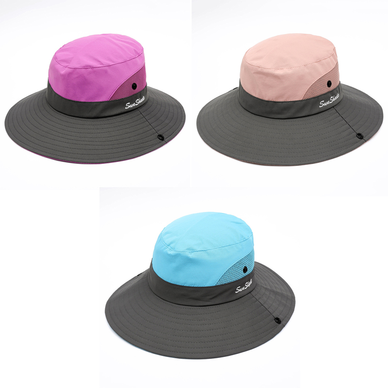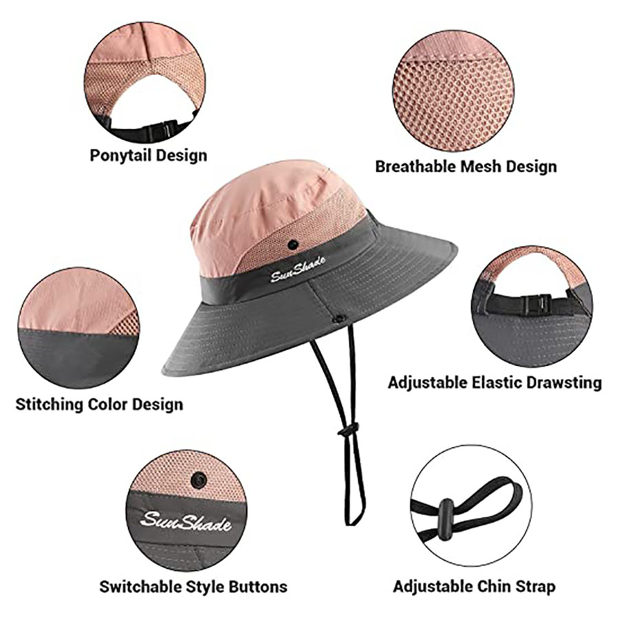 1pcs အမျိုးသမီး ကျယ်ပြန့်သော နေရောင်ဦးထုပ် ခေါက်နိုင်သော ခရမ်းလွန်ရောင်ခြည် ကာကွယ်ရေး ကမ်းခြေပုံးဦးထုပ် Ponytail Mesh ငါးမျှားဦးထုပ်