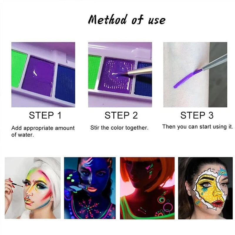 1 * ရေတွင်ပျော်ဝင်နိုင်သော မီးရောင်စုံမိတ်ကပ် Palette
