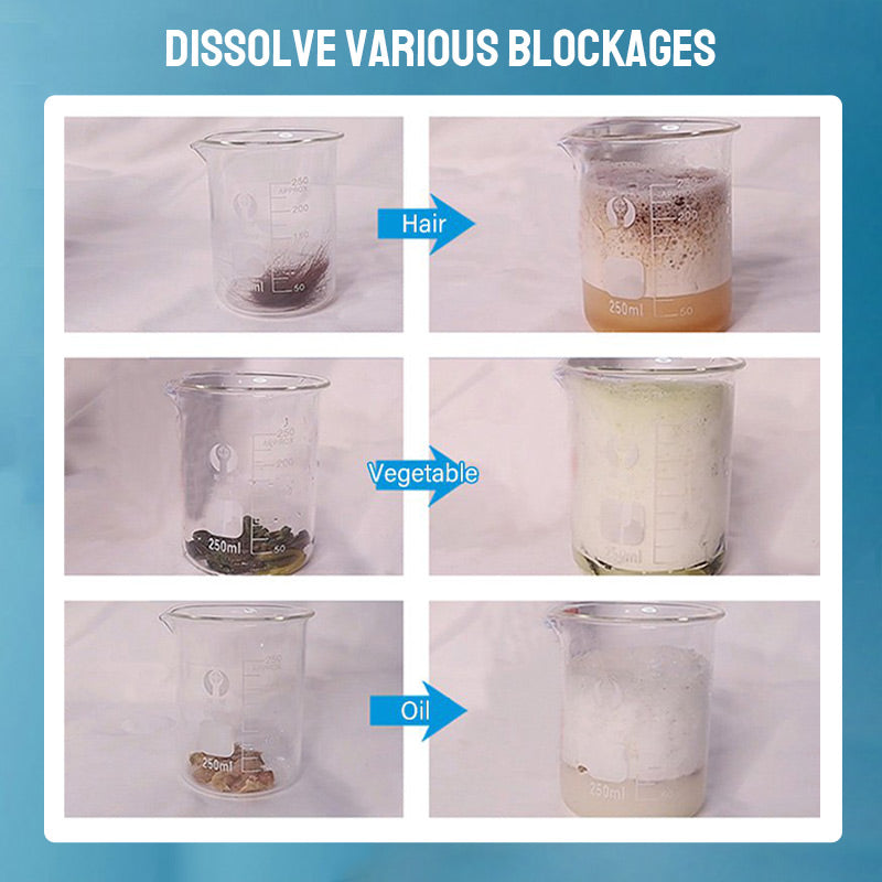 * အစွမ်းထက်သောလုပ်ဆောင်ချက် - ဆံပင်၊ စက္ကူ၊ ဆပ်ပြာအစွန်းအထင်း၊ ဟင်းသီးဟင်းရွက်များ၊ သစ်သီးများ၊ အစားအစာအပိုင်းအစများ၊ အဆီနှင့် အော်ဂဲနစ်ပစ္စည်းများကဲ့သို့သော ပိုက်ပိတ်ဆို့မှုများကို လျင်မြန်စွာ ချေဖျက်ပေးနိုင်ပါသည်။