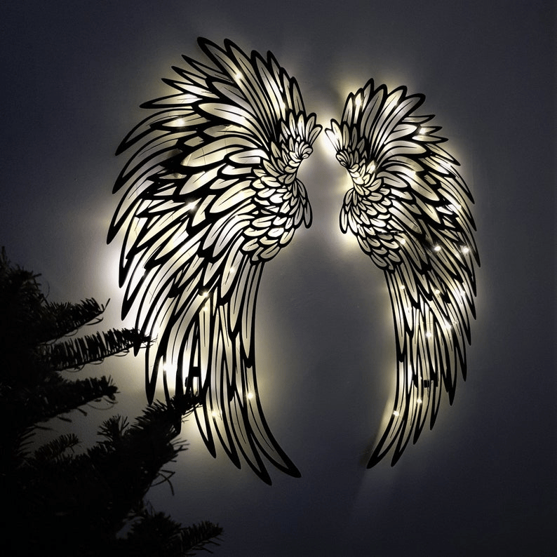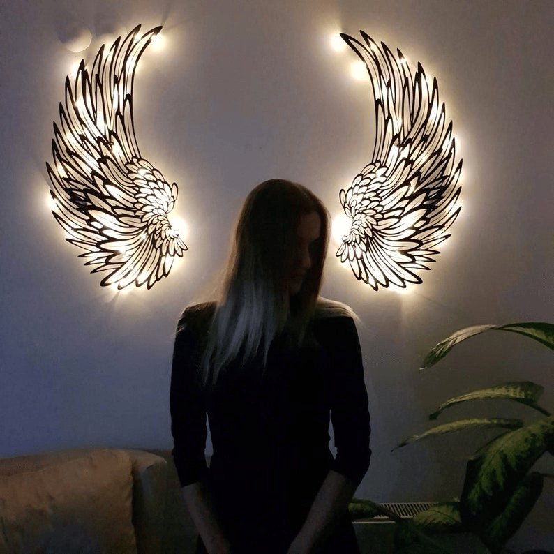 ✨PERFECT FOR DECORATION - Angel Wings Metal Wall Art သည် သင့်ဧည့်သည်၏ အငွေ့အသက်ကို သက်သာစေမည်ဖြစ်သည်။