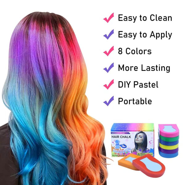 8 သက်တန့်ရောင်ဆံပင်မြေဖြူခဲများသည် အပြာ၊ အစိမ်း၊ အဝါ၊ လိမ္မော်၊ ခရမ်းရောင်၊ ပန်းရောင်နှင့်