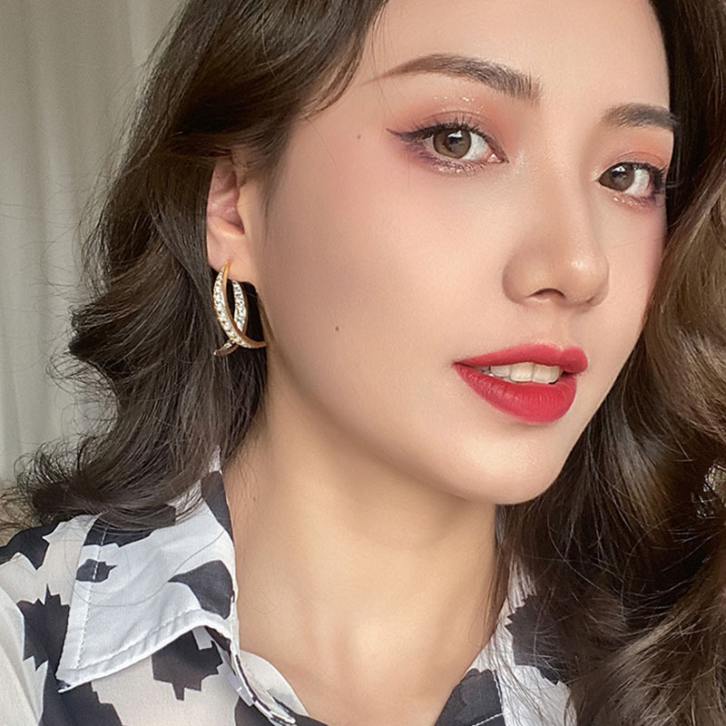 1Pair * Fashion Cross Curved နားဆွဲများ ပါဝင်သည်။