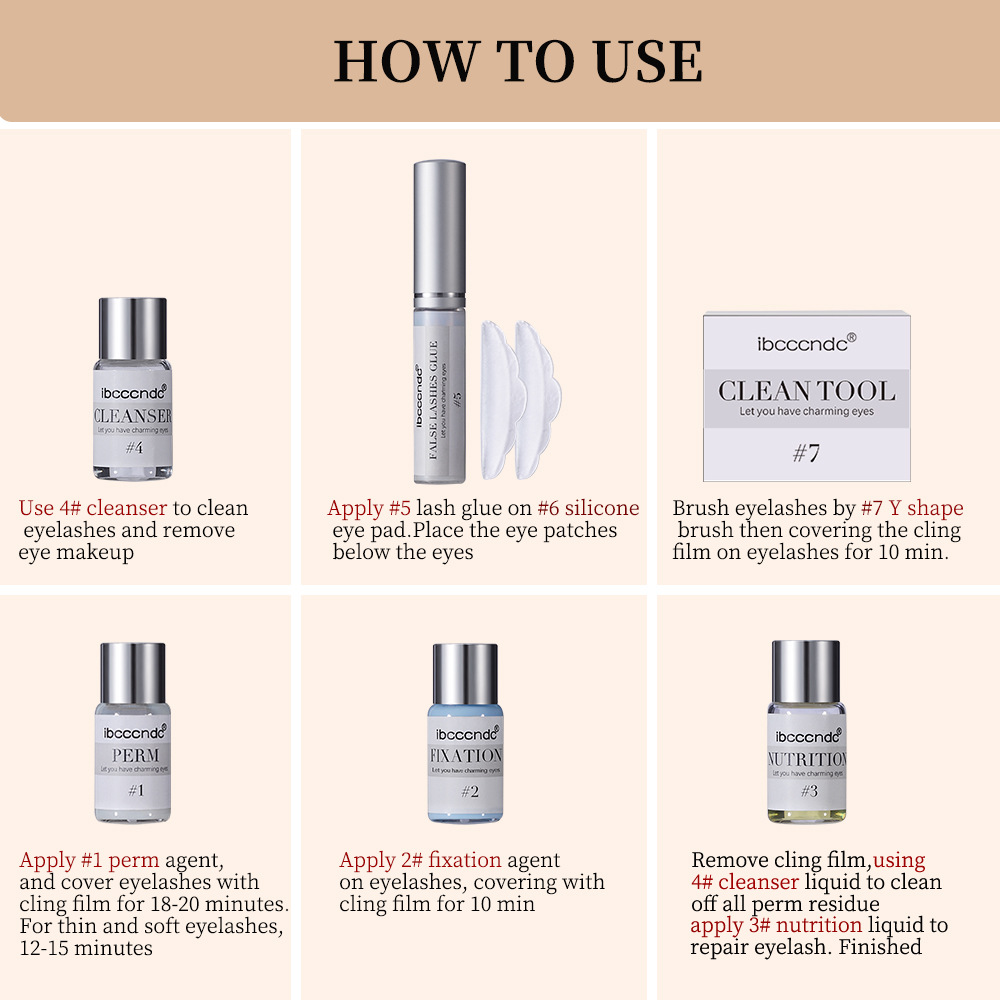 6၊ မျက်တောင်ပေါ်တွင် #2 fixing agent ကိုသုံး၍ ပလပ်စတစ်ဖလင်ကို 8-12 မိနစ်ခန့် အုပ်ထားပါ။
