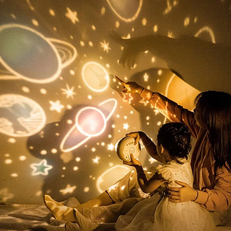 ကြယ်ပွင့်များ၏ ဂလက်ဆီများကို လွှတ်တင်စေပြီး အေးချမ်းသော အိပ်စက်ခြင်းကို အားပေးသည့် ပတ်ဝန်းကျင်ကို ဖန်တီးပေးပါသည်။