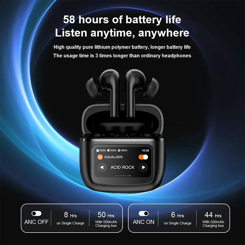 လွန်ခဲ့သော ၅ မိနစ်Smart Touch Screen Noise Canceling Waterproof နှင့် Sweatproof Bluetooth နားကြပ်များ